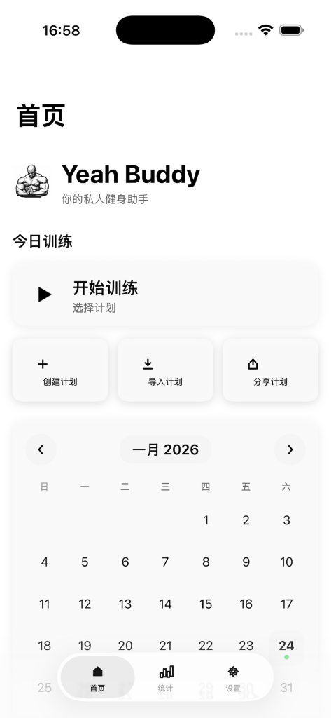 Yeah Buddy 是你的私人健身助手。记录每次训练、创建个性化计划、可视化你的进步,帮助你实现健身目标。